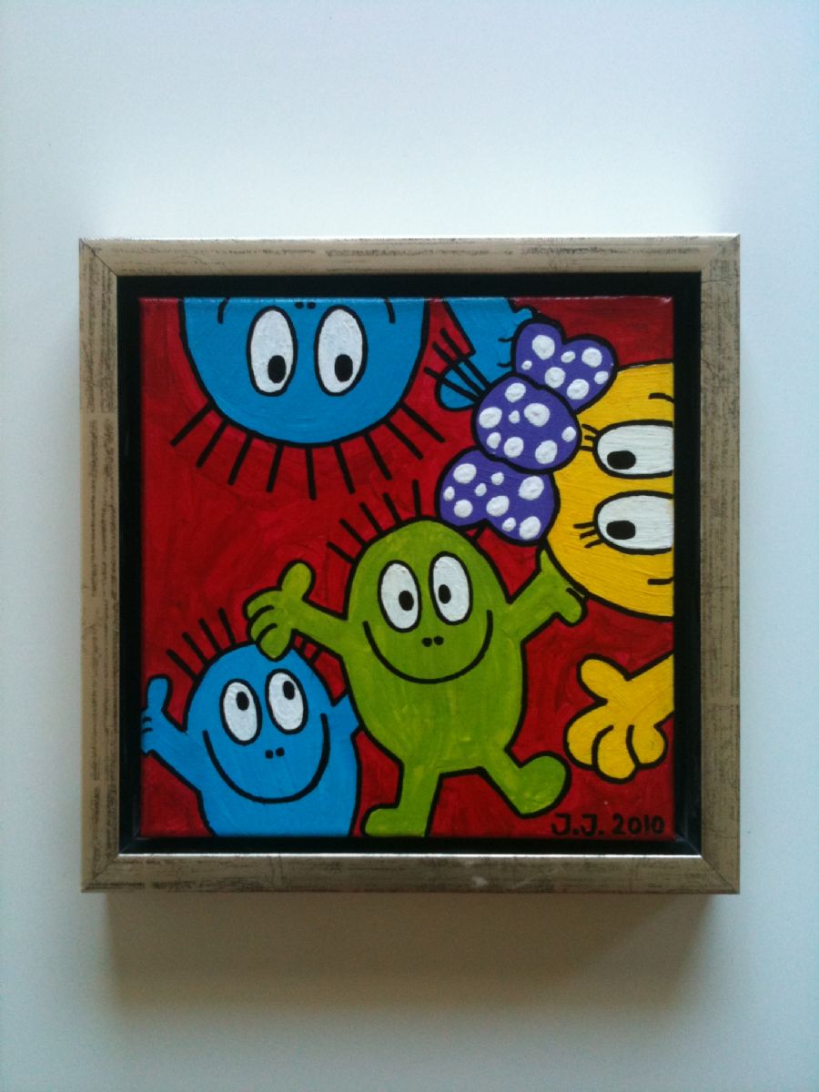 Lavet med acryl og posca. Lakeret for at få en meget blank og skinnende overflade.