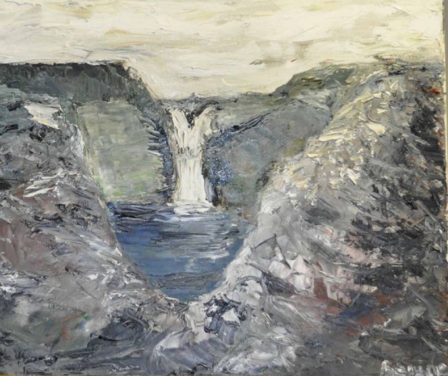 Olie på lærred, malet lidt abstrakt udelukkende med paletkniv.
