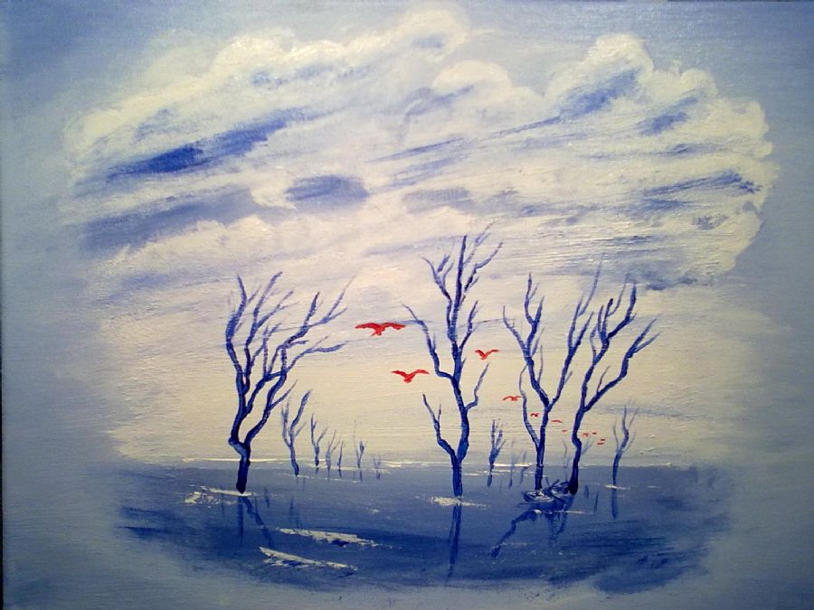 Hvid, ultramarine - øvelse i at skabe dybde i billedet.