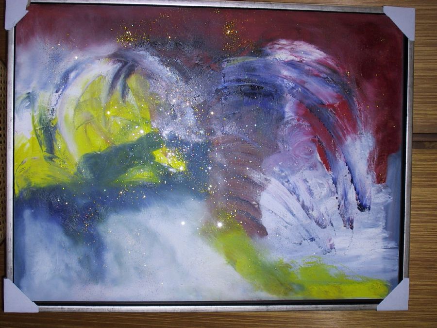brug af 4 faver hvid rød gul og blå påført med med diverse pensler og svampe