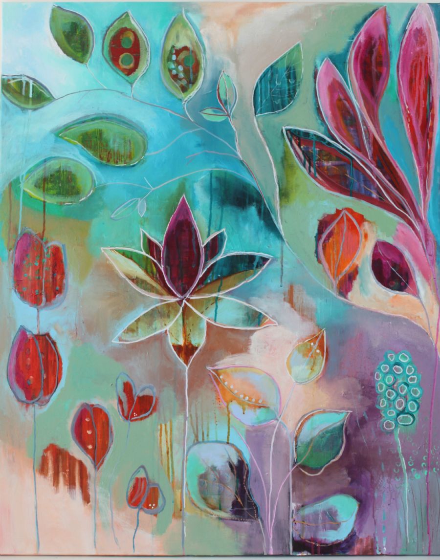 akryl på lærred i mange lag, afsluttet med fernis