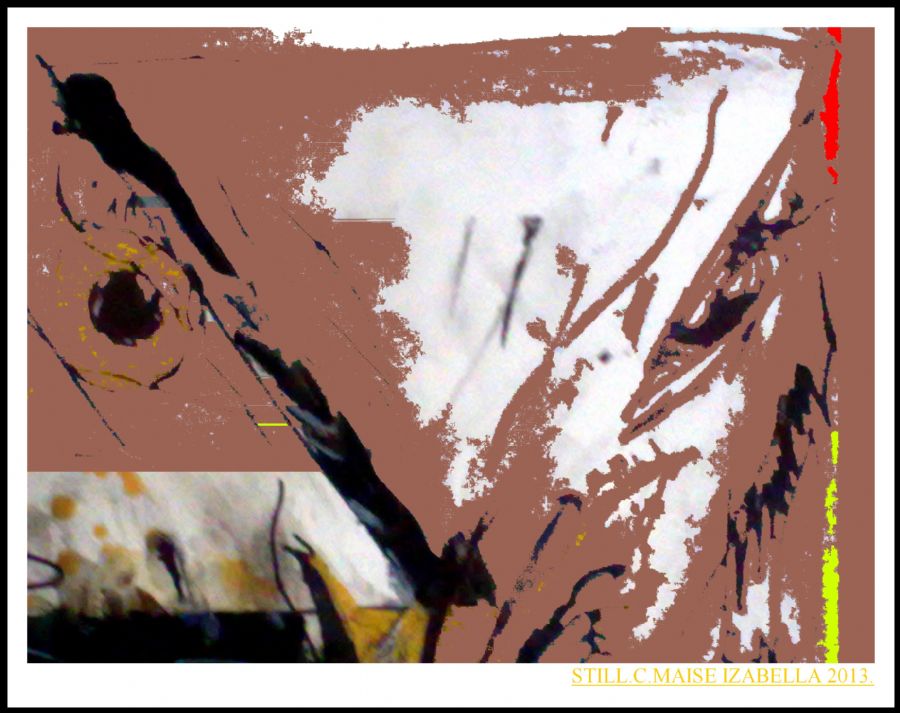 Håndtegning med acyl, tuch og kul på papir. Affotografferet, og viderebearbejdet grafisk. Således uddraget af værket : LEFT END.