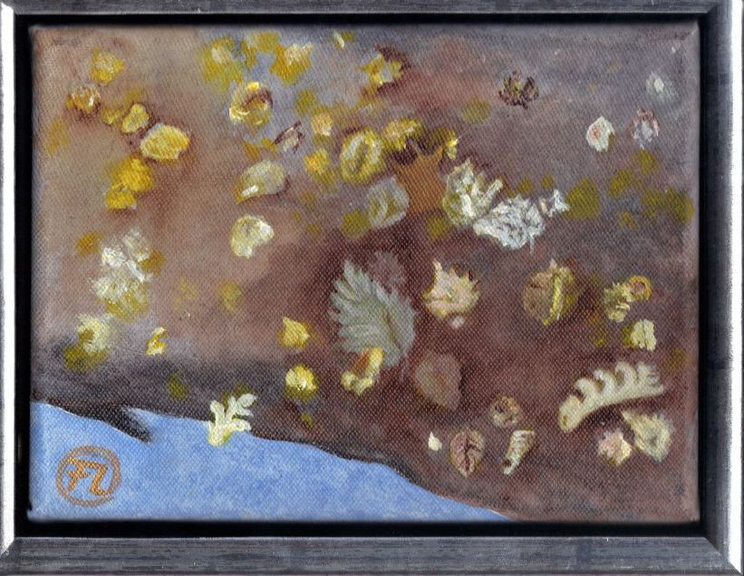 Les Feuilles Mortes -Visne blade - i en vandpyt. Stilleben på gaden nær abstraktion, og alligevel en stemning.