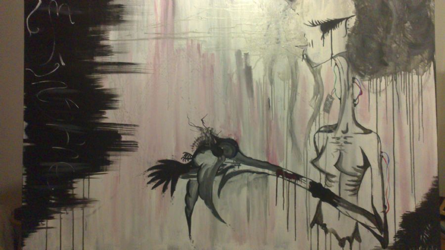 Dette billede (malet i 2011) handler om livet med spiseforstyrelser og følelsen af sin frihed dør langsomt. Jeg har skrevet ''Im Insane'' i det sorte område fordi det bliver tit tænkt i sammenhæng med spiseforstyrelser fordi man bliver så kontrollerende omkring en selv.