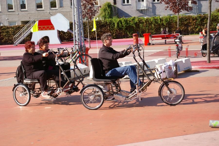 Parallelcykel til 4 personer med EL-motor og 8 gear til hver person. Efterløber kan tages af og fungere til 2 personer.