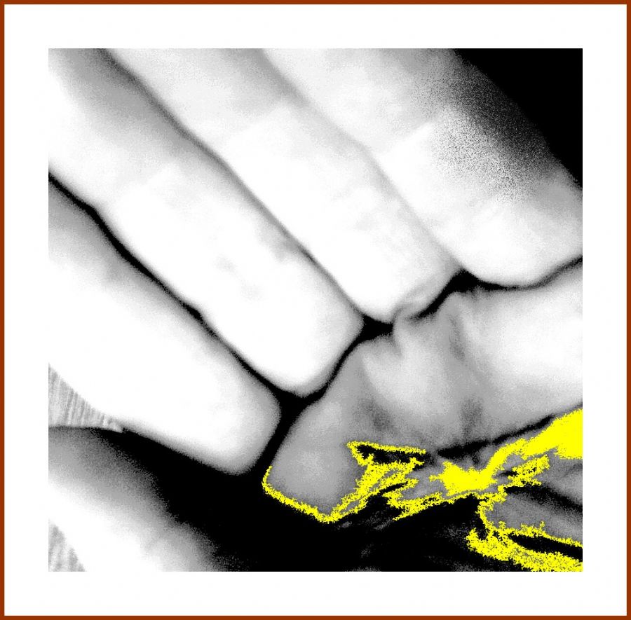 FOTO AF HÅND OG LØVETAND´S BLOMSTER FRØ FANGET EN SENSOMMERDAG. FOTO VIDEREBEHANDLET DIGITALT.