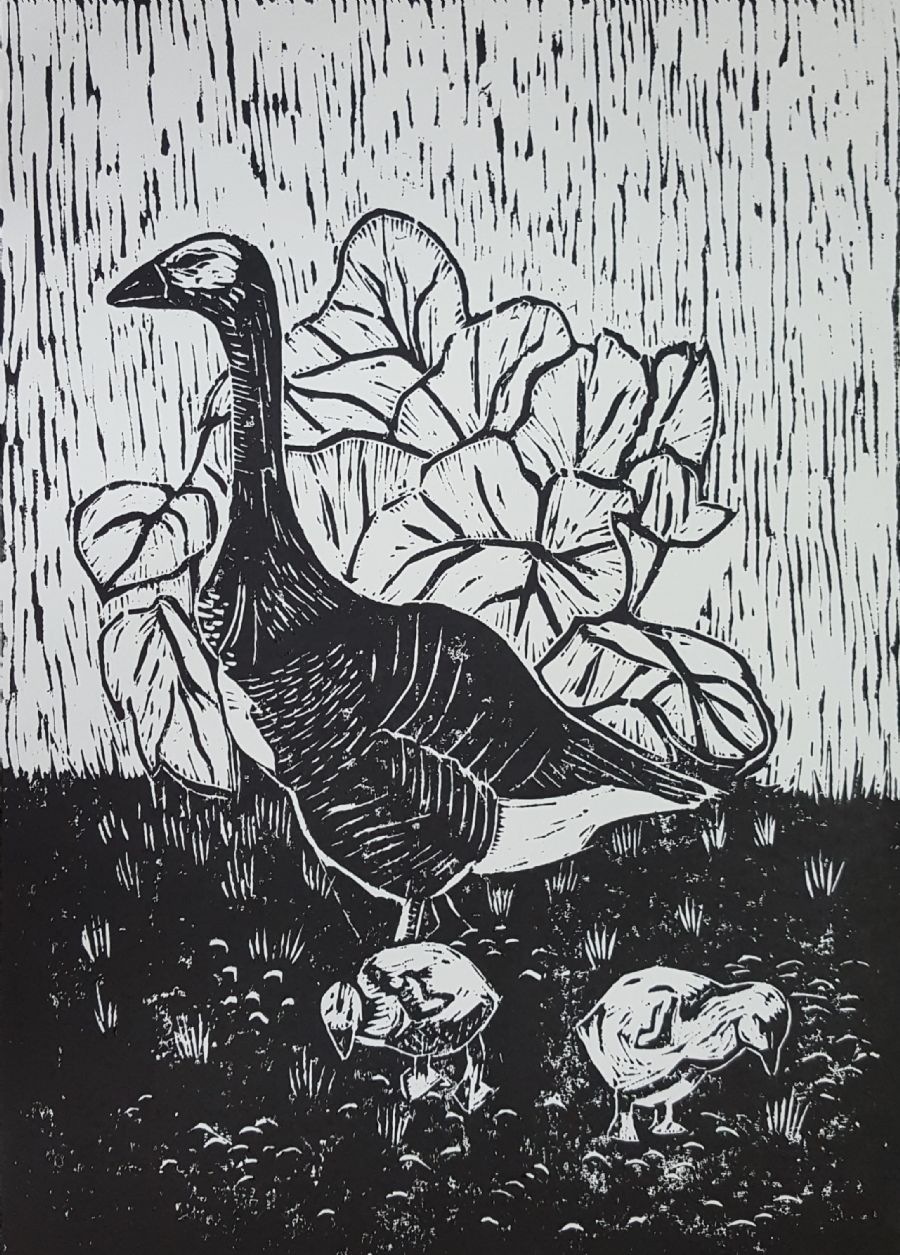 Træsnit trykt på 300 grams akvarelkarton.