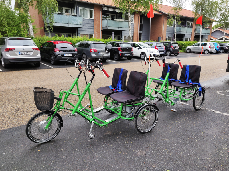 Dansk fremstillet brugskunst i København NV. 🇩🇰 🇩🇰 🇩🇰 Ældrecenter Hvissinge fik parallelcykel mandag den 25 Maj i år til 4 personer, med 8 gear til hver person og El-hjælpemotor 36V. Efterløber kan tages af og cyklen bliver nu til 2 personer. 🌻 Og beboer og personale kører mange ture nu på parallelcyklen, har jeg fået at vide af dem på landevejene i Hvissinge. 🌻 Fremstillet i København www.Dankunst.dk 👋 🌻 Ældre på cykel igen. https://www.facebook.com/groups/2190423784571571/