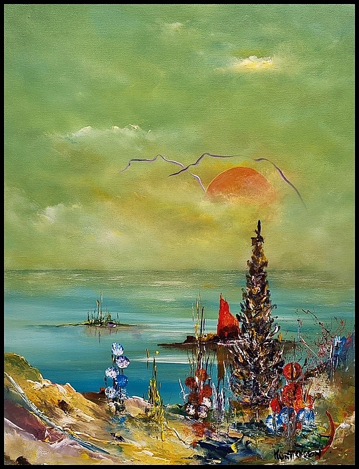 Malet i akryl på lærred. Leveres indrammet. Fragtfri levering i Danmark. Se www.atelier-kurt-olsson.dk