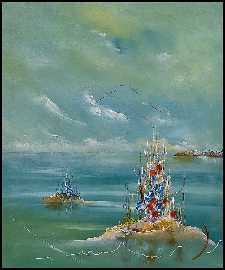 Malet i akryl på lærred. Leveres indrammet. Fragtfri levering i Danmark. se www.atelier-kurt-olsson.dk