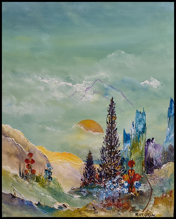 Malet i akryl på lærred. Leveres indrammet. Fragtfri levering i Danmark. se www.atelier-kurt olsson.dk