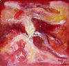 Blandet acryl og oliemaleri på lærred udført med pensel og spatel. Det er det færdige maleri af det tidligere viste udkast. |
