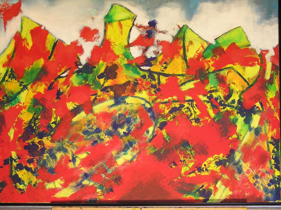 akryl abstrakt landskab med inspiration fra Pyrænerene